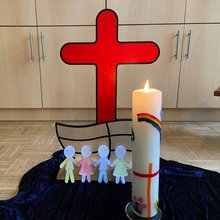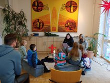 Wir haben gesungen, gemalt und vor dem Abschlusslied "Segne Vater 1000 Sterne" das Vaterunser gebetet.