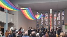 Nach der Taufe von zwei Kindern sorgte das ebenfalls verkleidete Ruhrsoundorchester mit seinen Trommel- und Bläserinterpretationen u. a. von „La Bamba“ für beste Stimmung und feierte mit der Gemeinde Gott, Karneval und das Leben.