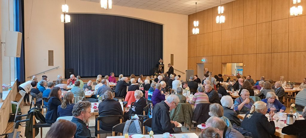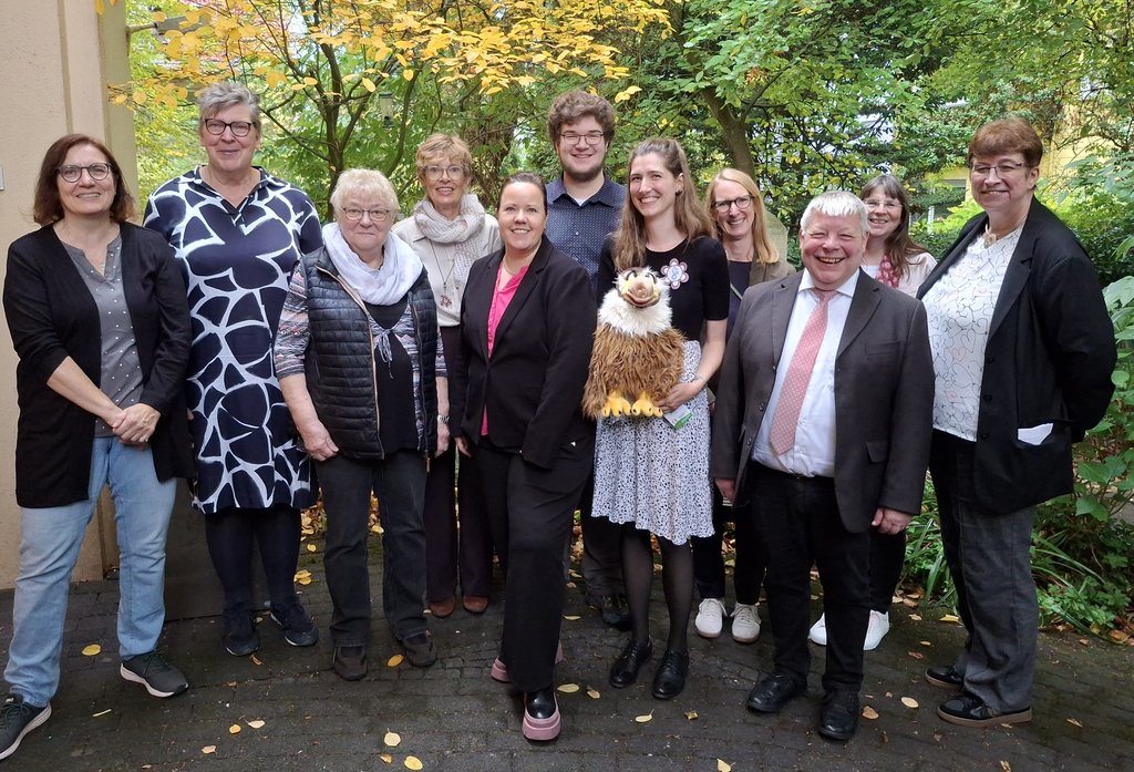 Im anschließenden Empfang im von Herrn Wölki liebevoll vorbereiteten Gemeindesaal gab es u.a. ökumenische Grüße von Pastor Scherges, einer Abordnung aus der Vikariatsgemeinde Essen-Bergerhausen, unserer Kitas und den Kolleg*innen aus dem Gestaltungsraum, die passend zum Ordinationsspruch eine Adler-Handpuppe überreichten.