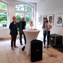 Bei der anschließend offiziellen Eröffnung kam natürlich auch das Künstlerpaar zu Wort, das sich für die Ausstellung ihrer Arbeiten im Gemeindezentrum der Reformationskirche sowie für den Zuspruch von Weggefährten herzlich bedankte. Mit einem Glas Sekt oder Orangensaft bestückt betrachteten und besprachen die Besucher*innen die ausgestellten Bilder.