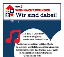 Am Samstag, 13. Dezember, konnte das Ruhrsound Orchester das WDR2 Weihnachtswunder auf dem Burgplatz in Essen eröffnen.