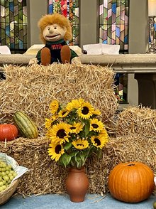 Wir feierten am 6. Oktober zu Erntedank traditionell einen Familiengottesdienst. Pfarrer Jörg Herrmann erklärte der Puppe Florian, dass wir an Erntedank dem lieben Gott ganz besonders für alles Gute im Leben danken. Dazu gehören, wie der Name schon sagt, der Dank für die Ernte aller Gaben unserer kostbaren Natur, aber auch für die lieben Eltern, Geschwister, Freunde sowie für die Nähe und Hilfe unseres fürsorgenden Gottes.